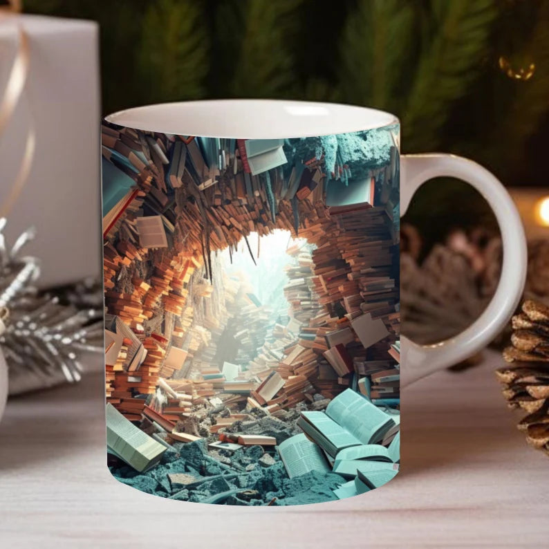 This microwave safe and dishwasher safe 3D Design Book Mug features a unique and eye-catching design. Enjoy your favorite hot beverage while appreciating the intricate and detailed design. Perfect for book lovers and art enthusiasts alike.