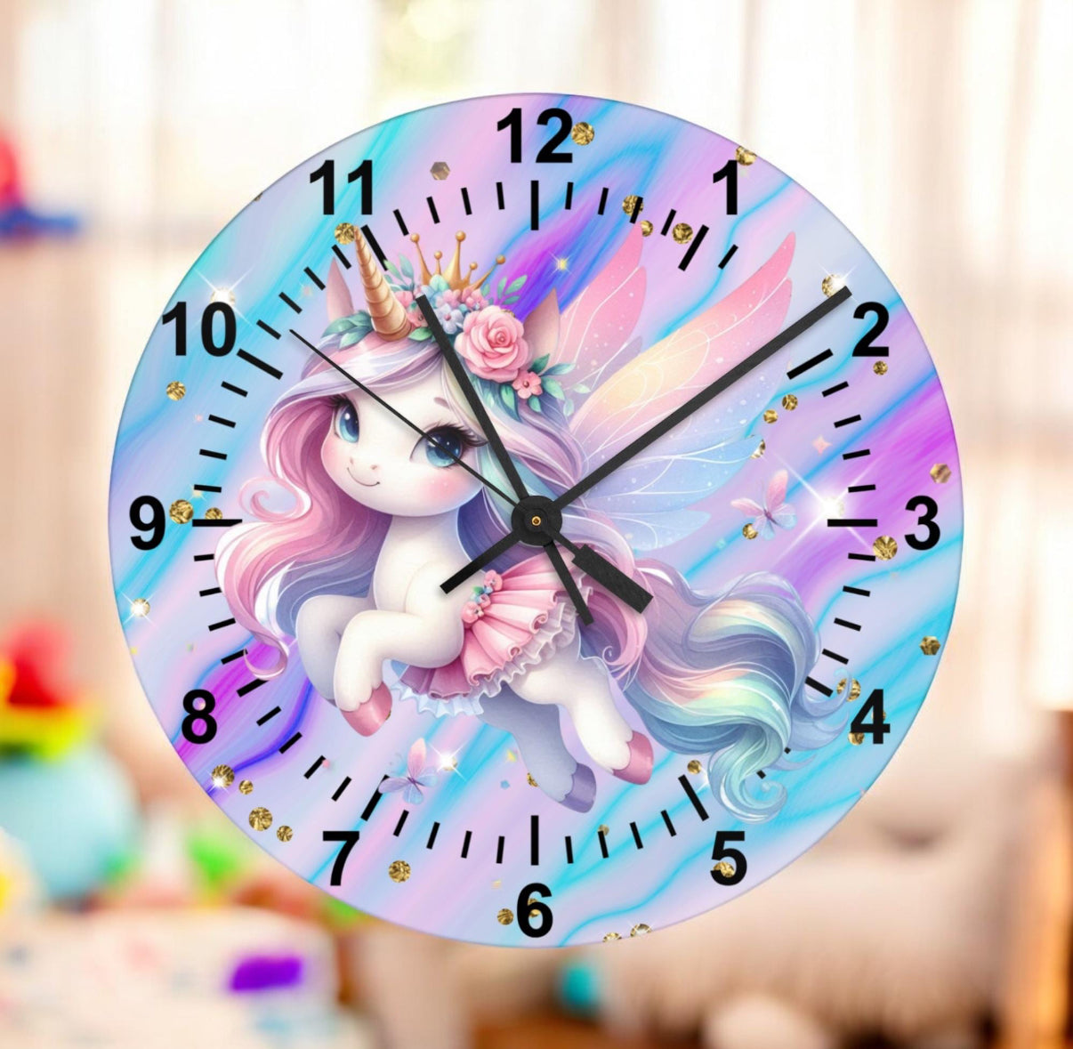 This 30 cm glass clock features a vibrant unicorn design that adds a touch of magic and color to any room. Its charming design and durable construction make it a perfect addition to any home decor. Keep track of time in style with this enchanting Colourful Unicorn Glass Clock.
