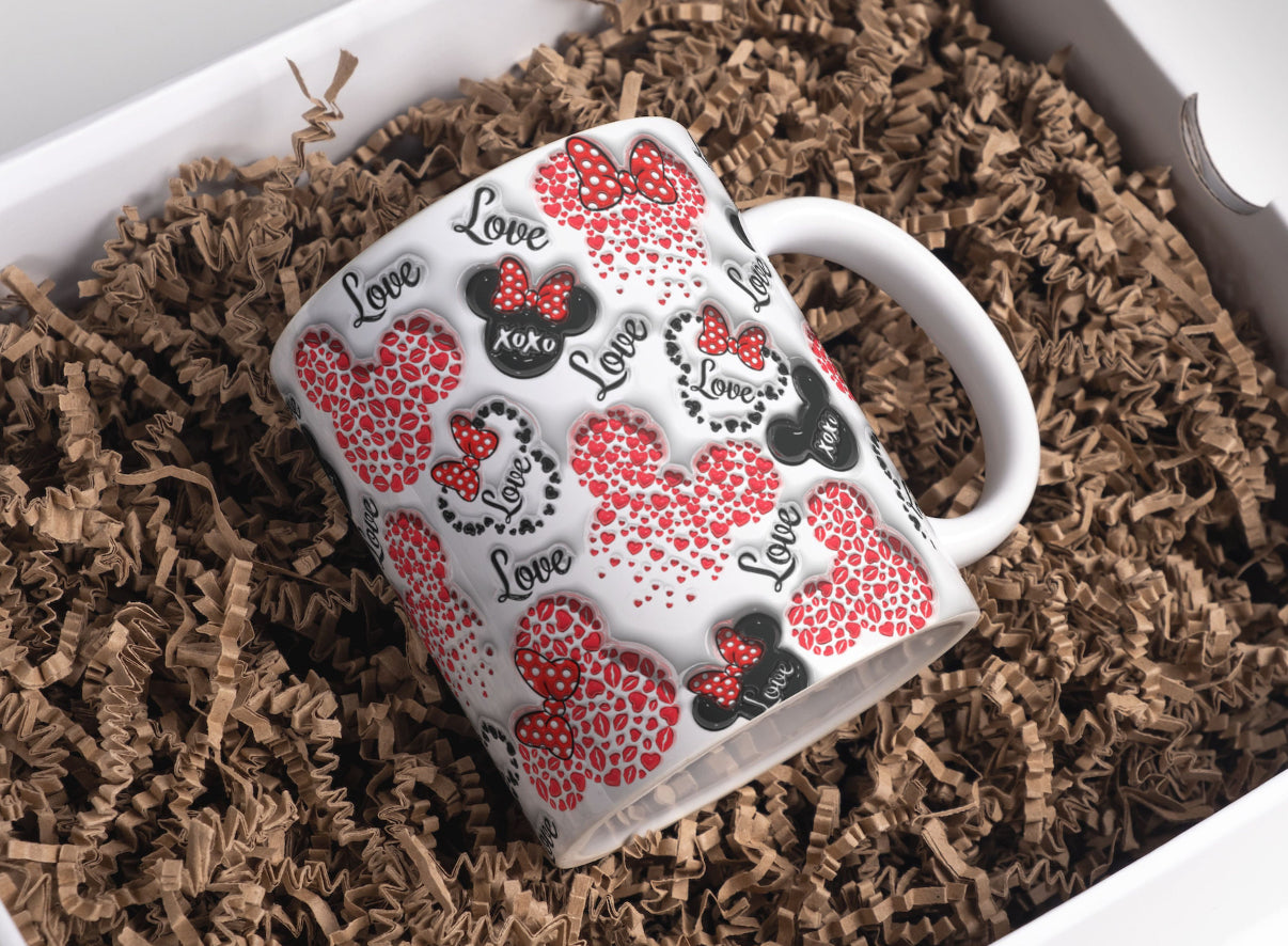 Indulge in whimsical nostalgia with our Mouse Hearts Mug featuring iconic characters Micky and Minnie. Made from durable ceramic, this mug is dishwasher and microwave safe for added convenience. Enjoy your favorite beverage while celebrating the timeless love of these beloved mice.